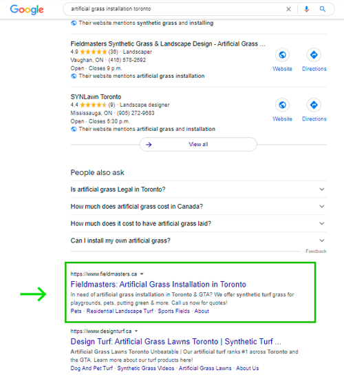 One of the most troubling oversights of Fieldmasters’ initial website was that the landing pages used for their digital marketing were hosted on URLs belonging to Rogers Outrank therefore, they were not contributing to the online success of the actual website belonging to Fieldmasters. So both earned and paid traffic were not being directed to the correct website, and not assisting with any growth for the company owned website. We knew that Fieldmasters was also not generating the number of leads they could have been, which meant that they were missing out on many potential sales opportunities. As the market became increasingly saturated with competing turf landscape design companies, Fieldmasters needed a robust and comprehensive strategy that could increase their website traffic and conversions/leads to significantly boost brand awareness and help them land the projects they deserve.